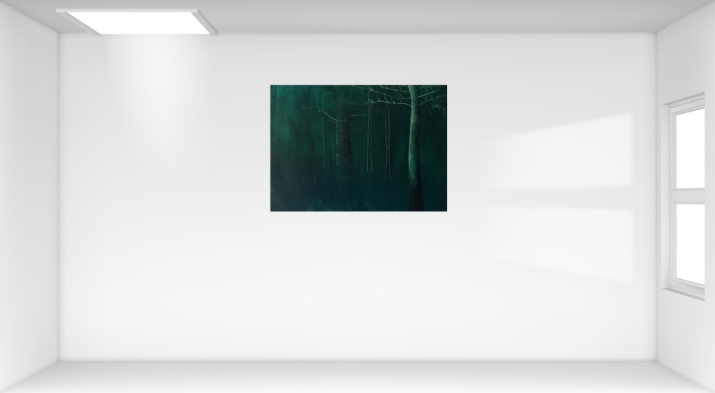 Materials: acrylic paint, canvas, thread, wooden frame included.