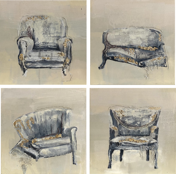 Serie Afterglow 1 to 4 – acrylic painting / canvas / thread / gold leaf